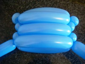 - Далее, на каждом шаре скручиваем пузыри, равные первому (21-23 см) и оборачиваем каждый за противоположное «ушко».