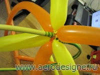 ШАГ 1 Для создания крыльев Бабочки, надуйте шары 12" размера желтого цвета и свяжите их как показано на рисунке ШАГ 2 Надуйте 2 шара размером 9" (фиолетового цвета) и свяжите их вместе с желтыми шарами из шага 1, перепутав их между собой
