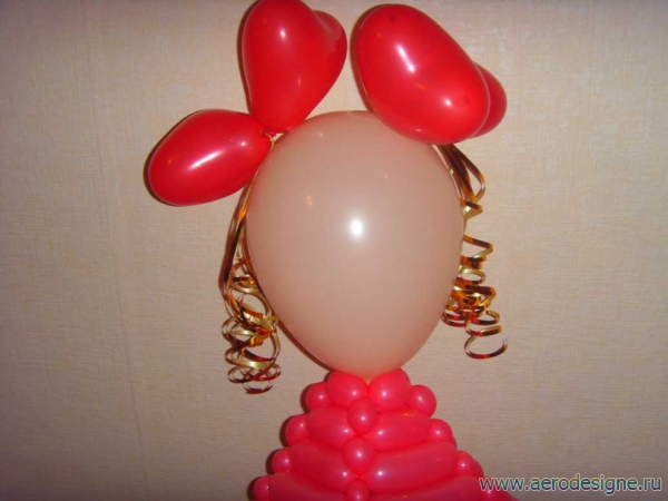 В этом фотоуроке описан процесс изготовления симпатичной девочки из шаров. Для изготовления потребуется:1. ШДМ 260 красный - 10шт(платье)2. ШДМ 260 персиковый - 3шт(ноги, руки)3. ШДМ 260 зелёный - 1шт(циферка)4. ШДМ 260 белый - 1шт(глаза, нос)5. ШДМ 160 желтый - 2шт(шнурки)6. ШДМ 160 розовый - 1шт(цветочек)7. 9" зелёный - 4шт.(основа)8. 9" персиковый - 1шт.(голова)9. Сердца 6" - 4шт.(бантики)10. Тесьма золотая (волосы)11. Оракал красный(губы)
