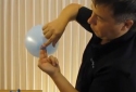Берем еще 2 черных 5"шара. Один шар несколько раз раздуваем, чтобы шар стал мягче. Затем надуваем его, завязав у края горловины. К нему подвязываем шар поменьше.