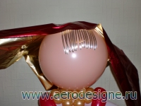 У меня фигурка в фото-уроке представлена в красном цвете (заказывают чаще), можно использовать цвет "фуксия",тоже красиво.Итак, нам понадобиться: ШДМ 260 красный-9 шт., белый-2 шт, 1 шт. золотой ; 12" матовый цвет "персик"-1 шт, 5" цвет "персик" металл-1 шт.; полисилк красный на косынку, самоклеющаяся бумага,маркеры,лента белая с золотой полоской,двусторонний скотч,клей резиновый.