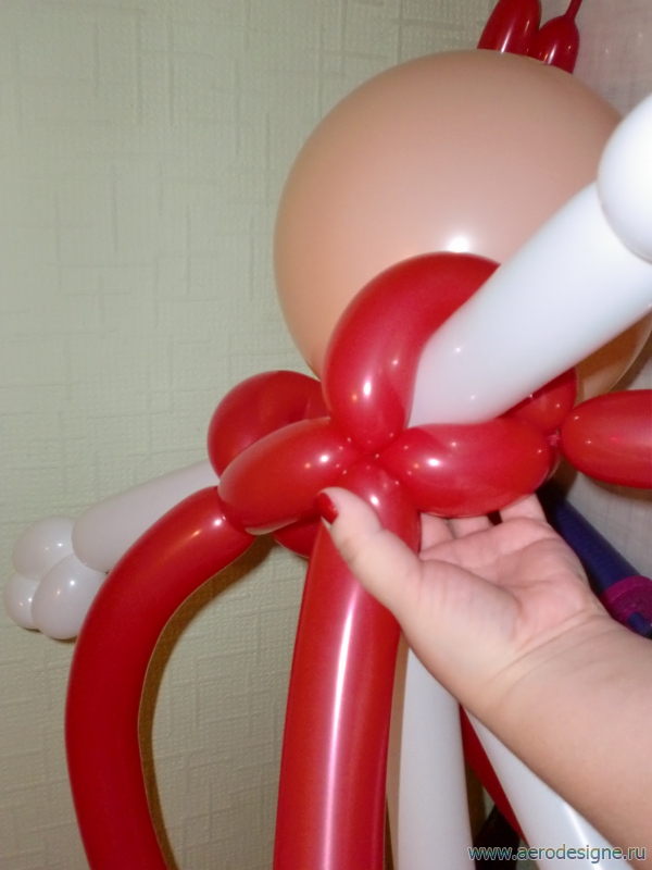 1 белый ШДМ надуваем почти на всю длину и по обе стороны крутим ручки,три пузыря связанные в петлю.
