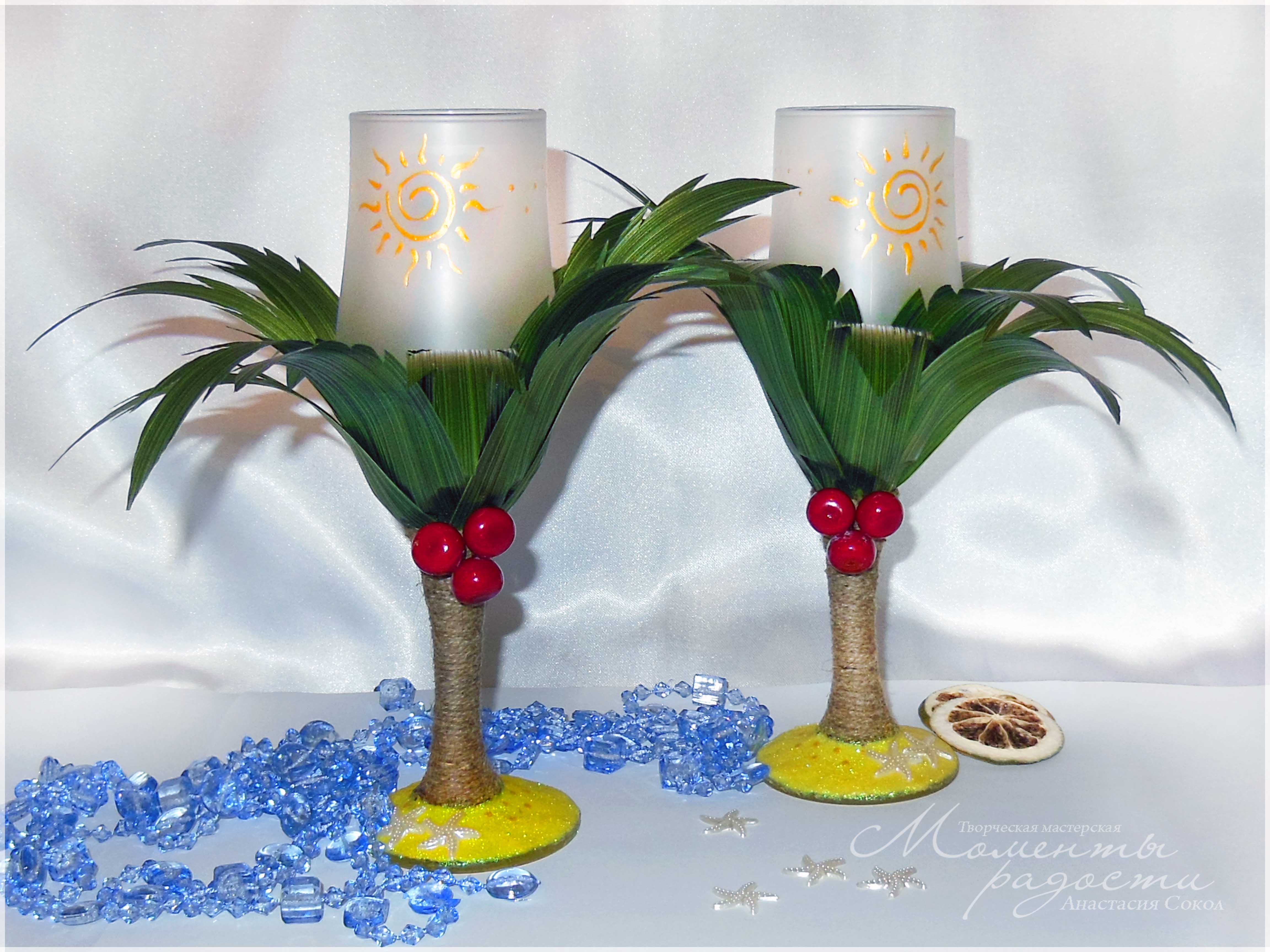 Фужеры на ту же свадьбу с гавайским уклоном.