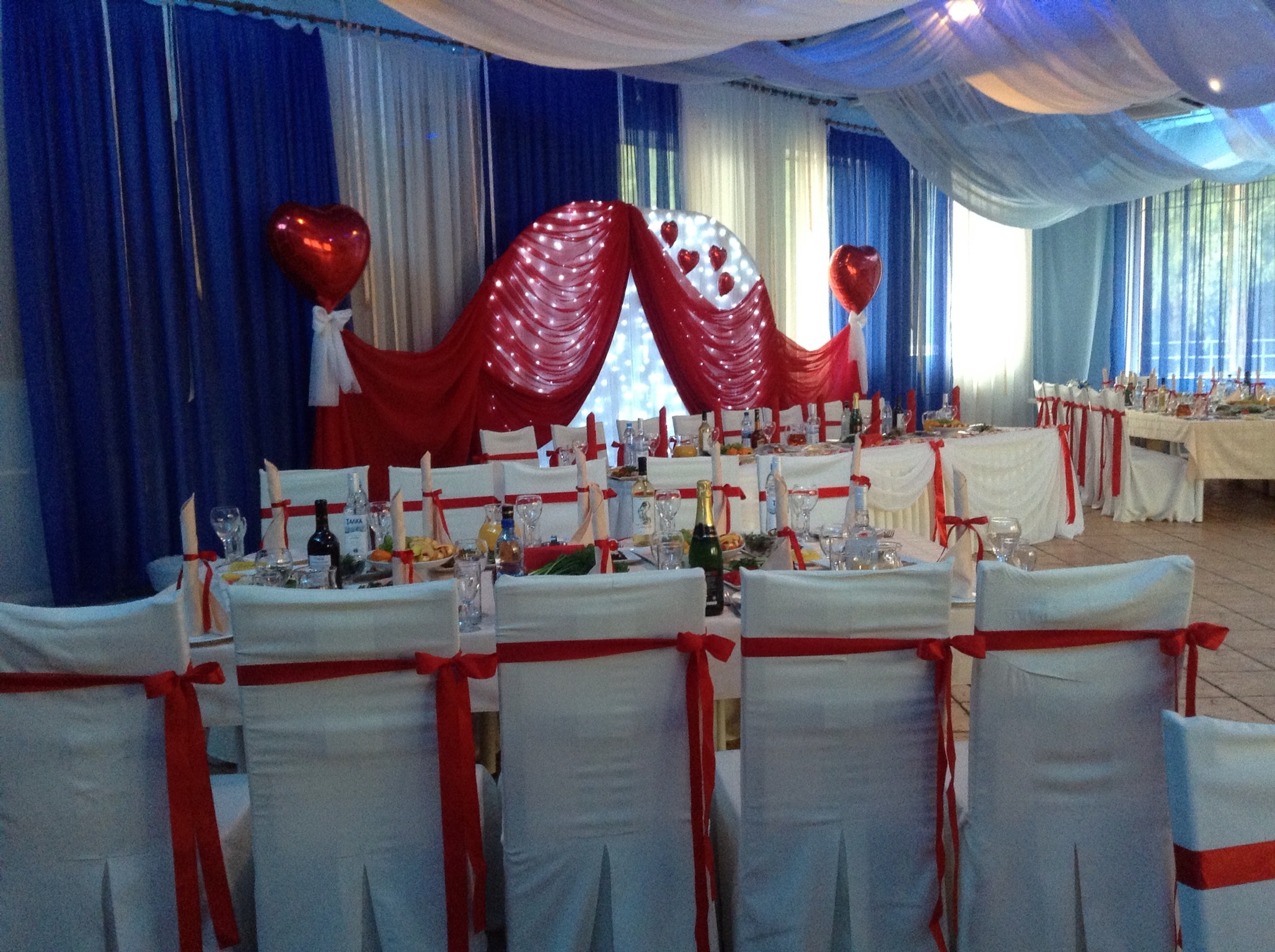 Арка на свадьбу, ленточки на стулья, стойки с сердцами