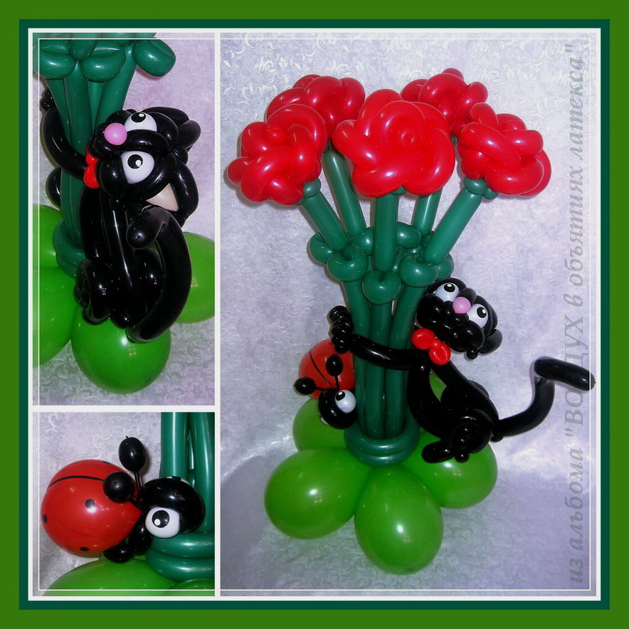5 роз, букашка и чёрный КОТЭ