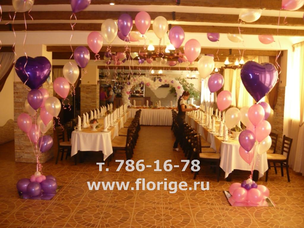 Оформление свадьбы шарами в розово-лиловом цвете