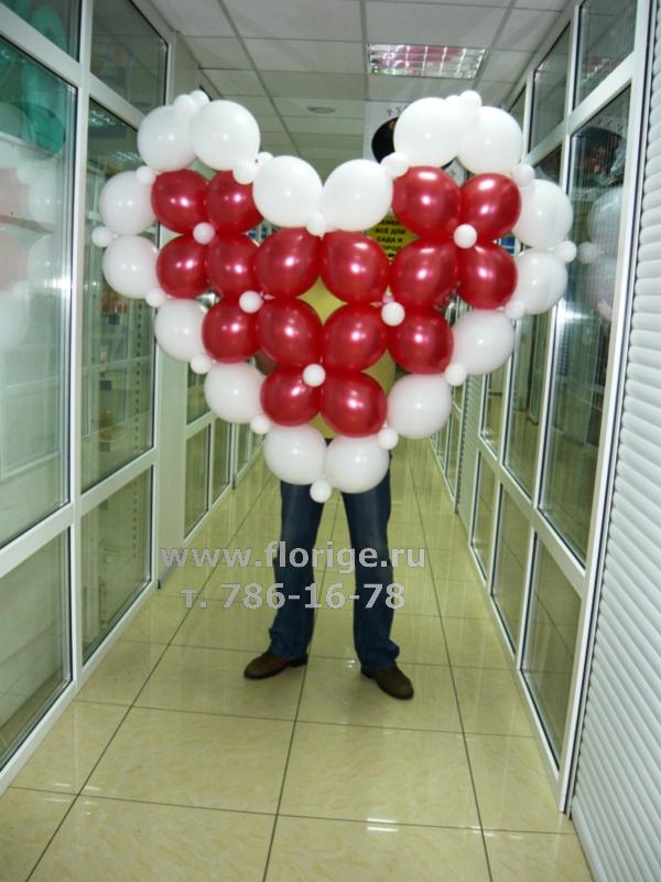 Бело-красное сердце из линкингов 12"