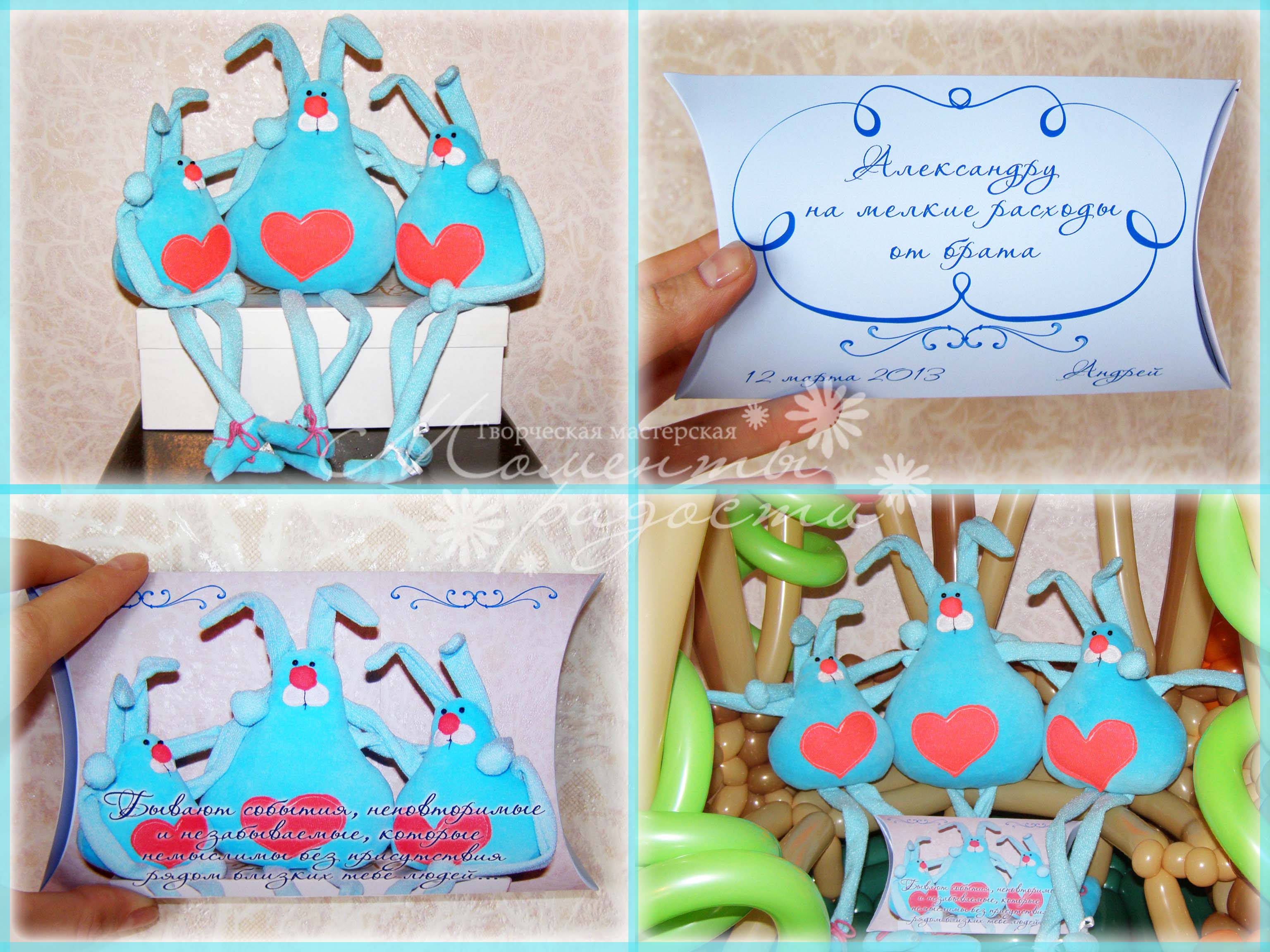 Принесли мне трех зайцев и попросили их оформить для подарка, плюс коробочку под деньги сделать в приложение. Это коробочка, оформление зайцев на предыдущем фото